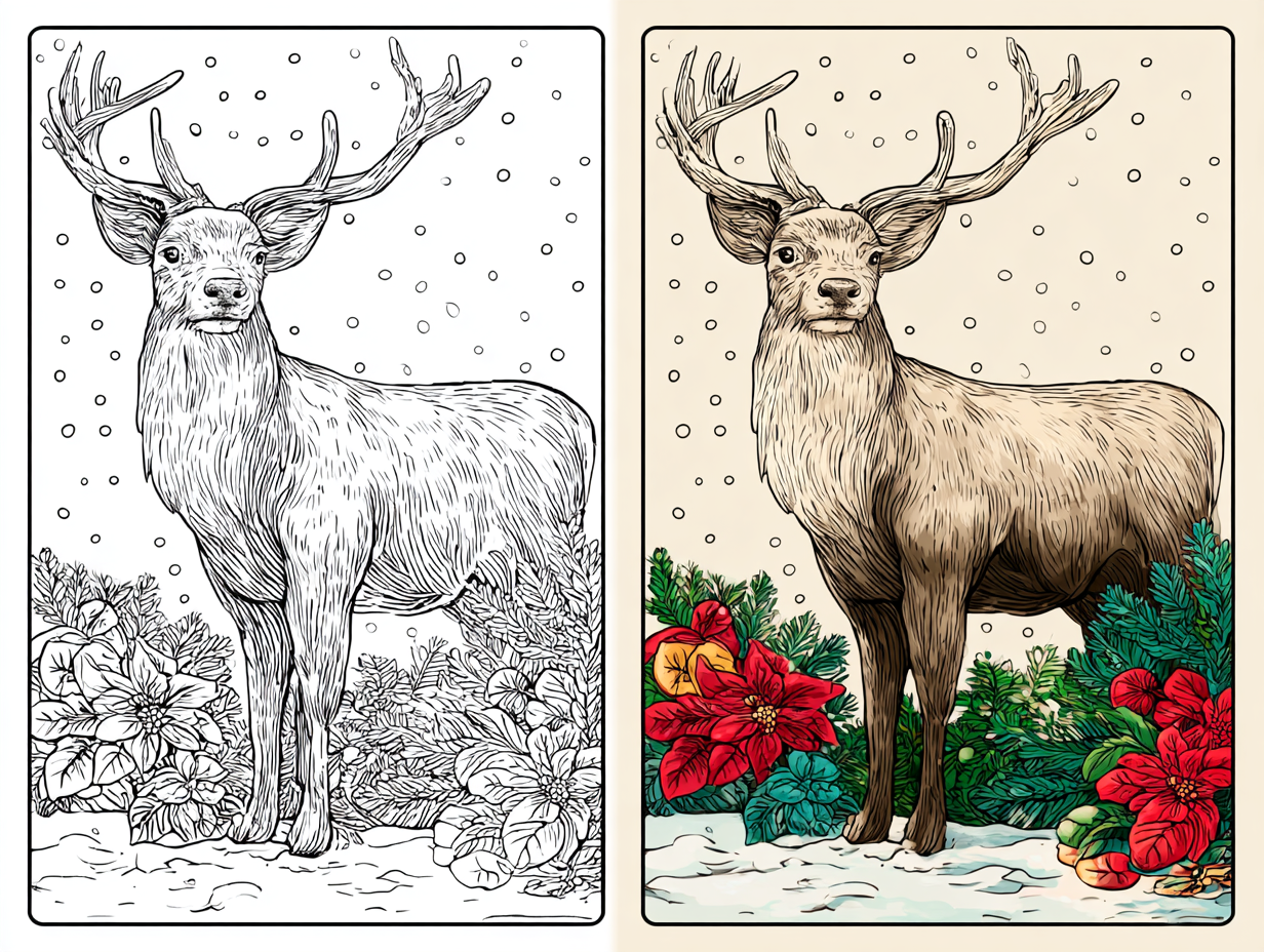 So, what exactly are these adorable festive reindeer designs? Think of them as delightful, hand-drawn or digitally crafted Christmas reindeer coloring designs that capture the magic of the season. They feature everything from playful reindeer with twinkling noses to elegant antlers wrapped in holiday lights. These pages aren’t just about coloring—they’re festive reindeer illustrations for coloring that bring warmth and joy to your holiday craft time.