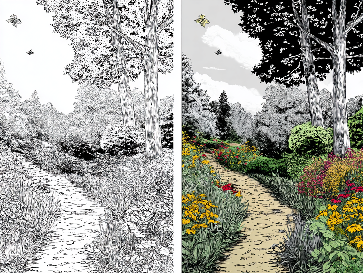 Discover tranquil shades with soothing garden scenes for creative minds through calming coloring pages that boost mindfulness and creativity for all ages.