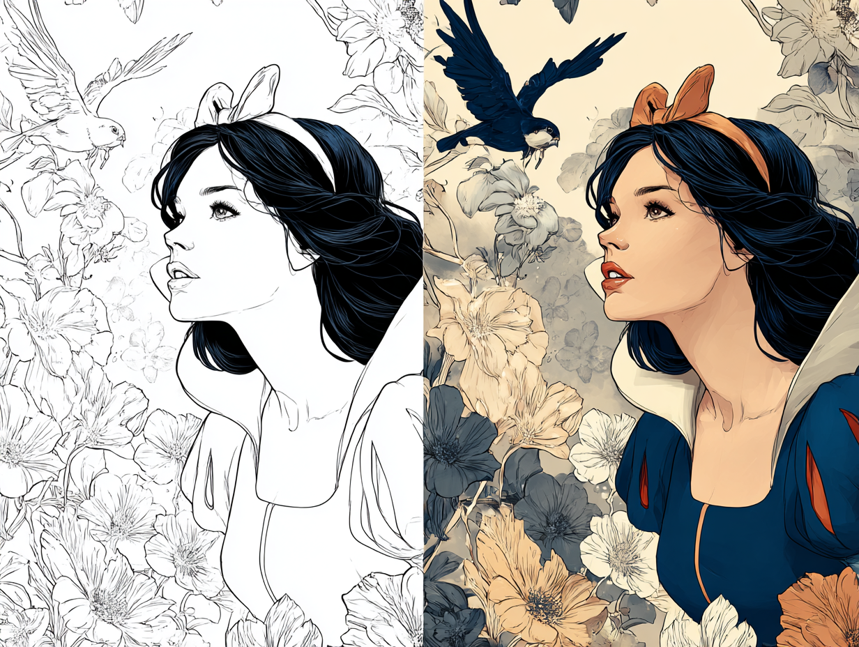 So, what exactly is this coloring page? Imagine a beautiful scene straight out of your favorite fairytale—a graceful maiden surrounded by woodland creatures, nestled in an enchanted forest. This isn’t just any coloring sheet; it’s a whimsical fairytale character coloring design that captures the magic of nature and storytelling all in one.